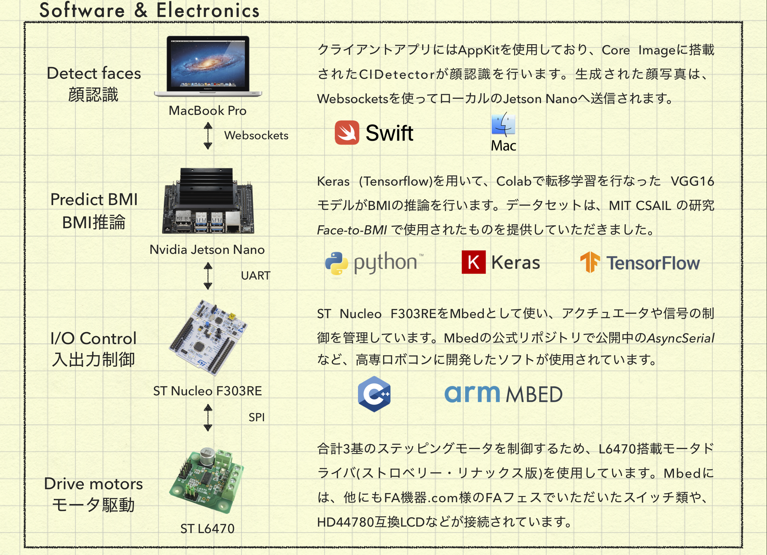 Jetson側にクライアントアプリケーションを搭載しても良いのではないかと指摘を受けることがありますが、FAIRCUTはメカトロニック・アートです。GNU/Linux上のアプリではCocoaやSwift・Aquaの美しさには敵わないため、Mac上にネイティブで作成しました。