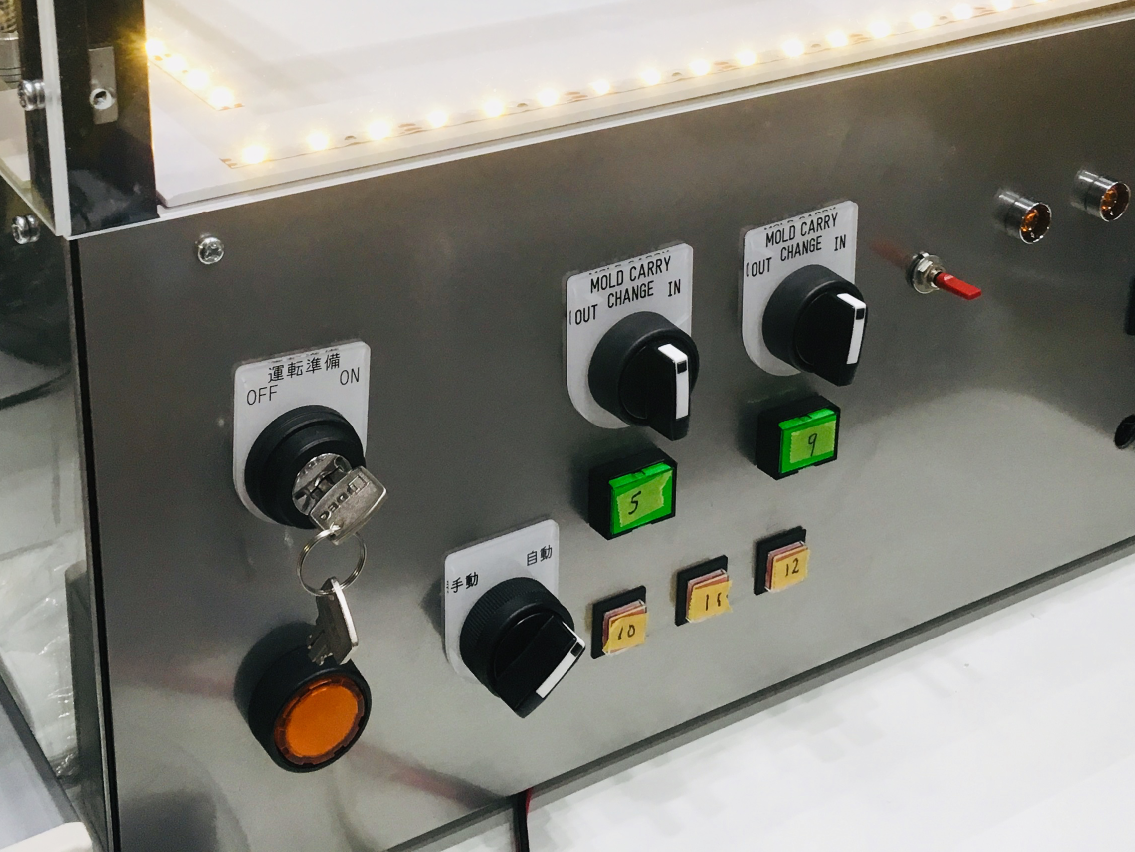 FAIRCUT本体に電源を入れたら、さながらFA機器のようなキースイッチを回して運転許可を与えます。FAIRCUTは全自動で動作しますが、他にもいらないスイッチ類が無駄についているのは、ただカッコイイからにほかなりません。